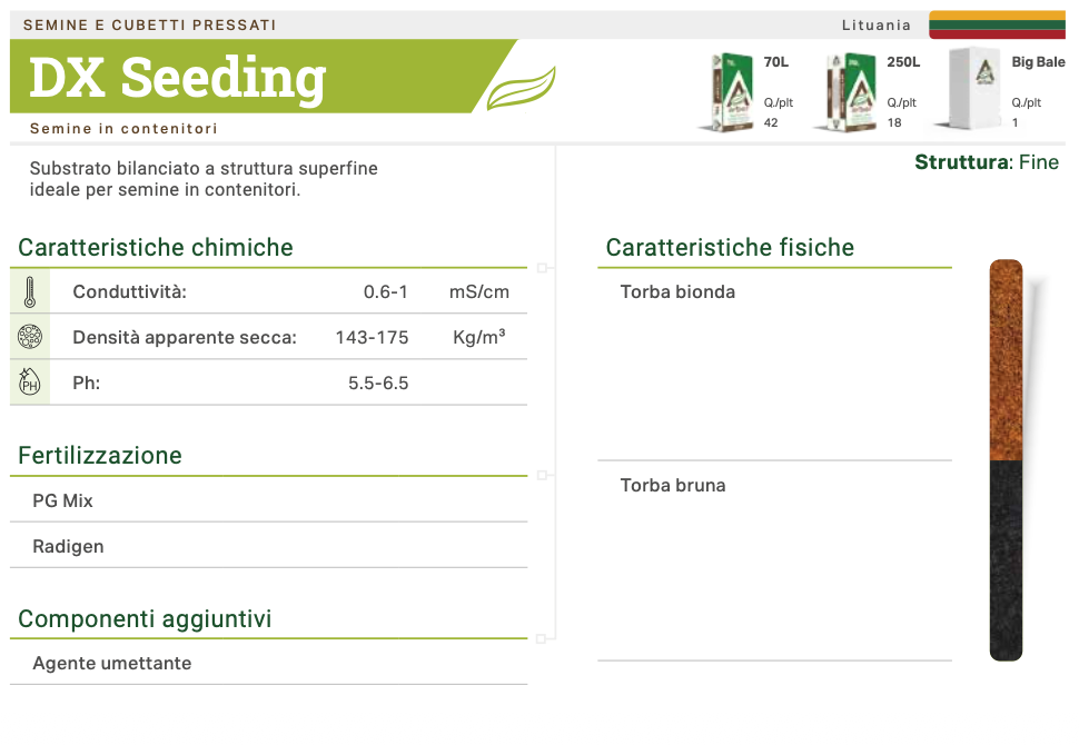 Substrato bilanciato a struttura superfine, ideale per la coltivazione di semenzali in contenitori. Composto da una miscela 50/50 di torba bionda e torba nera, proveniente principalmente dai Paesi Baltici, garantisce un’ottima ritenzione idrica e un’aerazione efficace per le radici. Con un pH compreso tra 5,5 e 6,5 e una conducibilità moderata, è progettato per supportare una germinazione uniforme e una crescita vigorosa delle giovani piante. Adatto per utilizzi in condizioni standard di coltivazione.