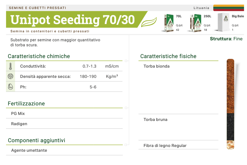 Substrato bilanciato a struttura superfine, ideale per la coltivazione di semenzali in contenitori. Composto da una miscela 50/50 di torba bionda e torba nera, proveniente principalmente dai Paesi Baltici, garantisce un’ottima ritenzione idrica e un’aerazione efficace per le radici. Con un pH compreso tra 5,5 e 6,5 e una conducibilità moderata, è progettato per supportare una germinazione uniforme e una crescita vigorosa delle giovani piante. Adatto per utilizzi in condizioni standard di coltivazione.